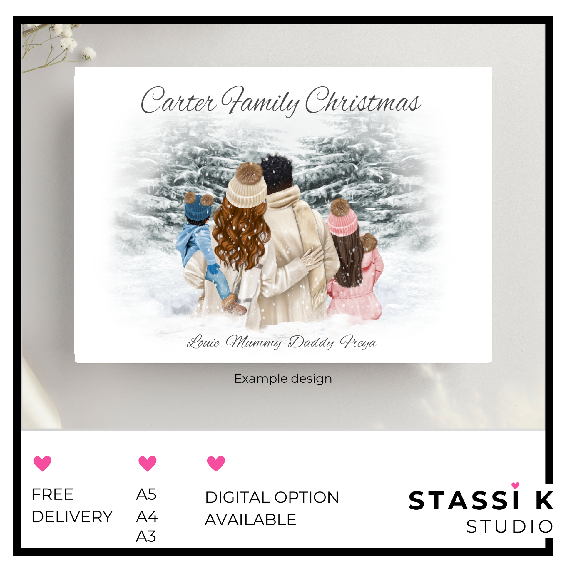 An item that's truly personal, a custom family print is as unique as the family it represents. This festive illustration is perfect for families celebrating their first Christmas together, Christmas in a new home or simply as an addition to the festive decor.