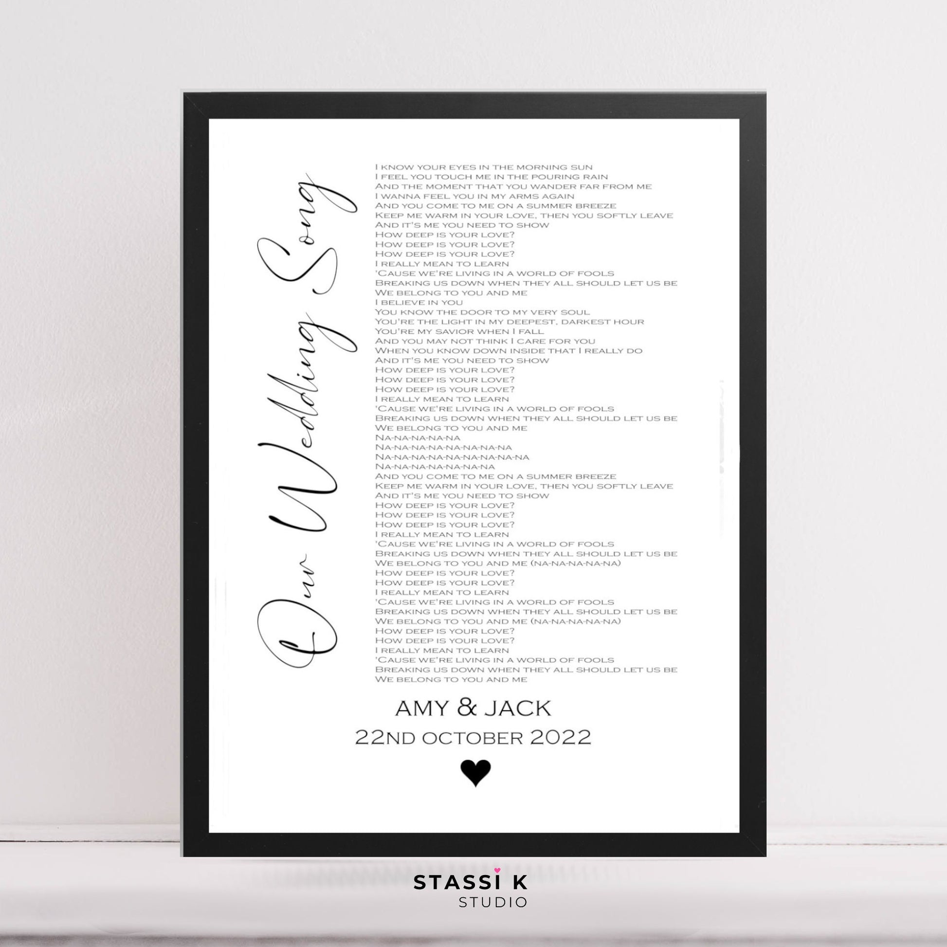 Wedding song lyric print